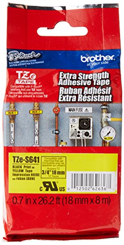 Brother Laminated Tape, Retail Packaging, 3/4 Inch, Black on Yellow (TZeS641) - Retail Packaging