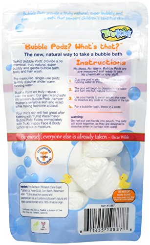 - No mess, no waste: TruKid Watermelon Bubble Pods are pre-measured and ready to use. No more accidentally pouring out the entire bottle of bubble bath!