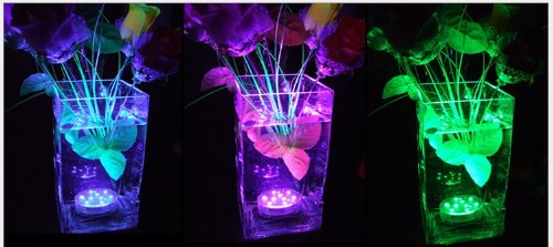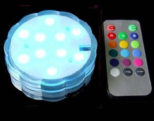 10 LED's that change color according to remote control color selection.