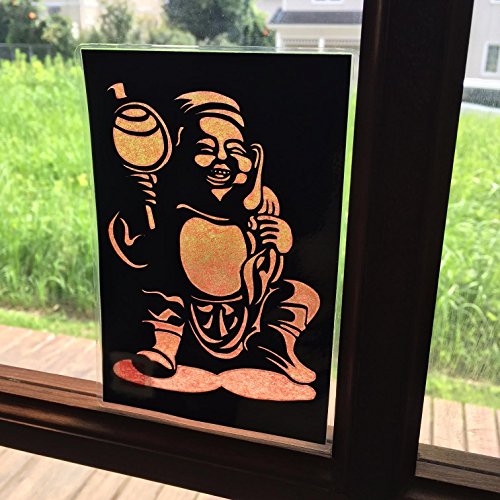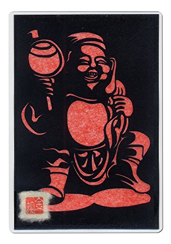Cutout picture Japanese art collage KIRIE “Seven Lucky God · Daikokuten” Seven Deities(Gods) of Good Fortune Made by Washi(Japanese paper) Scarlet, 4” x 6”