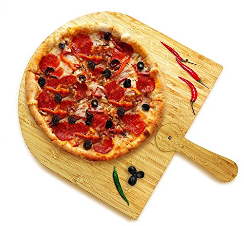 DURABLE & BEAUTIFULLY DESIGNED ANTI-MICROBIAL BAMBOO CONSTRUCTION - Our Pizza Peel is crafted from attractive, high-quality naturally anti-microbial bamboo that will stand the test of time. Our pizza server is sturdy, but not too heavy - It won't split, warp, or crack! Bamboo is also EASY TO CLEAN, as it is less porous than other woods. The grain of the bamboo is smooth and stunning, making our pizza peel a beautiful addition to your kitchen, or as a lovely gift for another pizza lover!