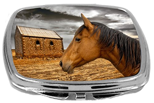 Rikki Knight Horse Close up Grey Skies Design Compact Mirror, 17 Ounce