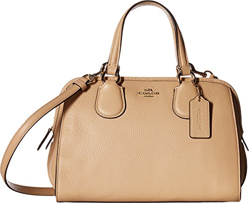 Pebble leather. Inside zip, cell phone and multifunction pockets. Zip-top closure, fabric lining. Handles with 5' drop. Long strap with 22 1/2' drop for shoulder or crossbody wear. Imported.