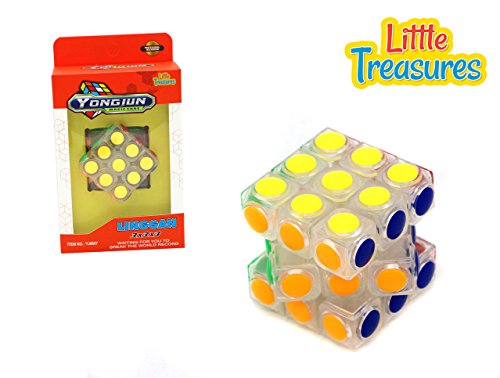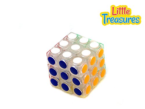 Studio : LITTLE TREASURES Publisher : LITTLE TREASURES Binding : Toy Product Description A fantastic game idea that helps children develops their problem solving skills and allows them to have fun at the same time. Little Treasures presents a soft rounded edge to the cube so children ages 3 and up can play safely for hours on end as they practice matching up all the different colors of the tiles. The idea behind the game is one jumble up the tiles so that the colors are randomized throughout the cube. Then they must start the clock and see how quickly they can line up all the same colors on the same side. This makes for great fun that will encourage kids to think quickly using all aspects of their brain that will make them better problem solvers in the end. Description: Included in this game package is 1 puzzle cube game that is designed differently with clear white or black cubes each with a different color. The different sides of the cube each have their own color and the goal of the game is to spin them around until all 9 same colored tiles are on the same side. Once all the sides are complete the game is over and the timer is done. The first time will take the longest but once a kid has finished the puzzle they will get better and better at it making it a quicker solve each time. They can practice as much as they want and maybe one day they will break the world record. 0