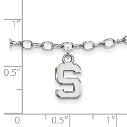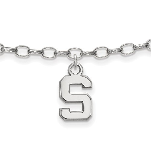 Solid 925 Sterling Silver Michigan State University Anklet - with Secure Lobster Lock Clasp (7mm)