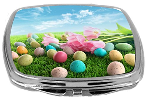 Rikki Knight Compact Mirror, Easter Eggs with Pink Flowers