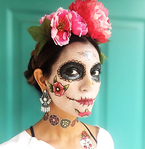 -. Title : FRIDA Flash Tattoos authentic Metallic Temporary Tats 2 Sheet Pack (multicolor & metallic) - Includes Over 28 colorful premium waterproof sugar skull and flower tattoos