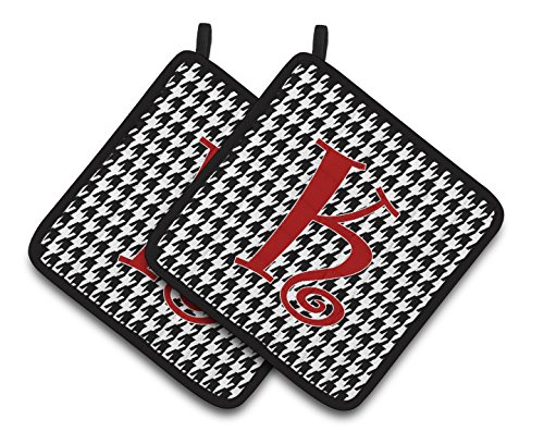 Caroline's Treasures Monogram Initial K Houndstooth black Pair of Pot Holders CJ1035-KPTHD, 7.5HX7.5W, Multicolor