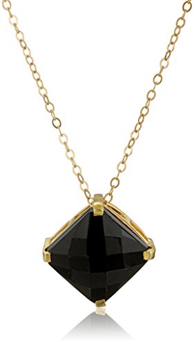 Gold Over Silver Prong Set Black Onyx Pendant Necklace, 18"