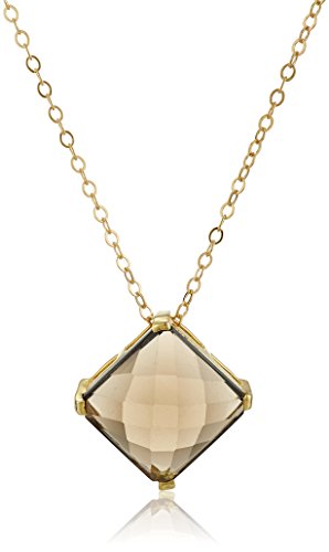 Gold Over Silver Prong Set Smoky Quartz Pendant Necklace, 18"