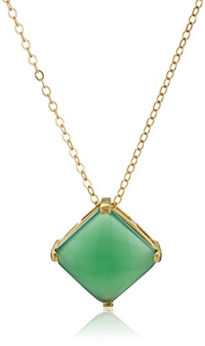 Gold Over Silver Prong Set Green Onyx Pendant Necklace, 18"