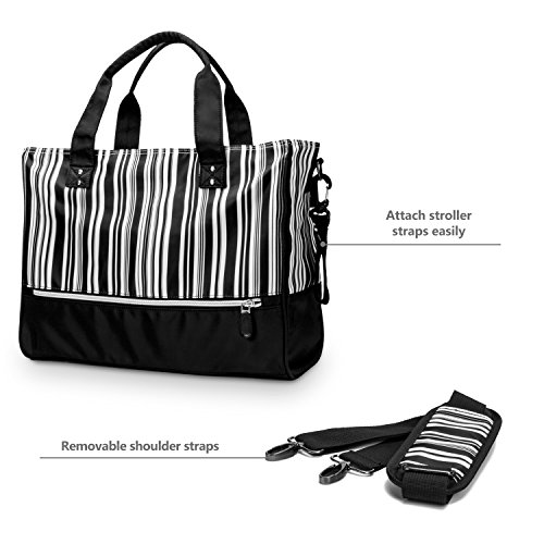 Accessories Included: - 2 x stroller straps - The universal stroller straps are strong enough to withstand any challenge! Quickly and easily attach and remove the bag from a stroller handle. - 1 x shoulder strap - Our diaper bag can be wore in different ways, the removable shoulder strap allow you to carry it the way you like. More options for you. - Changing Pad - Offering a black baby changing pad, which is waterproof and nice-looking. 0