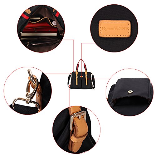 -. Brand : Hynes Victory -. Color : Black -. Department : womens -. Feature : High density nylon material: water resistant, dirt resistant, frost crack prevention. / Dimensions: 16.5 x 5.5 x 11.8 inches, Weight: 1.5 pounds. Top zipper closure. / Two top handle with an removable shoulder strap makes this bag easy to carrying. / Interior: 1 slip pocket, 1 cell phone pocket, and two zipper pockets. A large compartment will hold 13" laptop. / Suitable for women both in school or work, it blends a feeling of worldly utility with classically simple styling, making it the perfect accessory for whatever adventures your day has in store. -. Model : HV-0659 -. ProductGroup : Apparel -. ProductTypeName : LAGE -. Title : Hynes Victory Women Office Tote