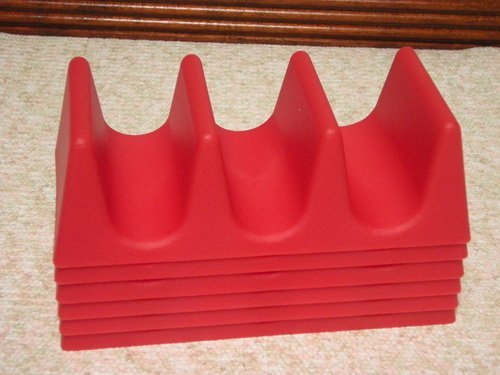 -. Brand : Taco Tenders -. Color : Red -. EAN : 0616316349506 -. Feature : Designed to hold 3 tacos uP.R.Ight for easy filling and eating. / Taco Holder size 6" x 3" x 2" / Dishwasher safe, microwavable and stack easily for storage / Made in the USA. / Our Taco Holders are made from polypropylene plastic which allow them to be used safely in the microwave and dishwasher. -. Label : Taco Tenders -. Manufacturer : Taco Tenders -. MPN : 00-AUE74Q-IT -. PackageQuantity : 6 -. PartNumber : 00-AUE74Q-IT -. ProductGroup : Kitchen -. ProductTypeName : KITCHEN -. Publisher : Taco Tenders -. Studio : Taco Tenders -. Title : Taco Holders~~ Red~~Package of 6 -. UPC : 616316349506