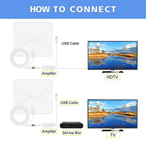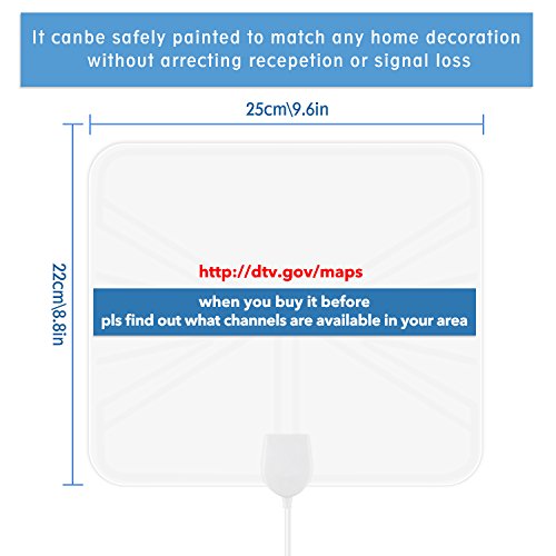 ▶?Chamfind Ultra-thin indoor digital HD TV antenna The antenna is designed for Digital TV with built-in tuner for free view. Simple to use and free forever. With it, you can enjoy the TV progrom free at home! How to use 1. Connect the TV Antenna to the back of your TV coaxial receiver. 2. Power on the antenna by below ways Powered by TV's USB charging port Powered by Digital STB charging port Powered by External USB power adapter(not included) 3. Attach the Antenna on the wall or window, behind a picture, on a shelf or anywhere to get the best reception. 4. Select correct singal source and then start a channel scan with the antenna. If the reception is sporadic, move the antenna to another location and rescanning. 5. Enjoy your FREE TV program. Note 1. Placing the antenna higher or closer to a window may get better reception. You must rescan whenever you move the antenna. 2. Go through your TV manual to make sure your TV is with built-in tuner for free view. 3. TV reception depends on the distance from your home to the transmitting tower and the surrounding environments. Specifications? ??Type: Indoor HDTV Antenna ? ??Material: PVC? ??Size (L x W): 25 x 22.3cm ??Extended Range: up to 50 miles ? ??Frequency Coverage: VHF 47-230 MHz ?UHF 470-862 MHz ? ??Impedance: 75Ω ? ??Operating Temperature:-45-185℉(-40-85℃) ? ??Power Requirement: 5V/30mA ? Package Includes 1 x TV Antenna 1 x Signal Amplifier 1 x User Manual ??Click on the 'Add to Cart' button now!