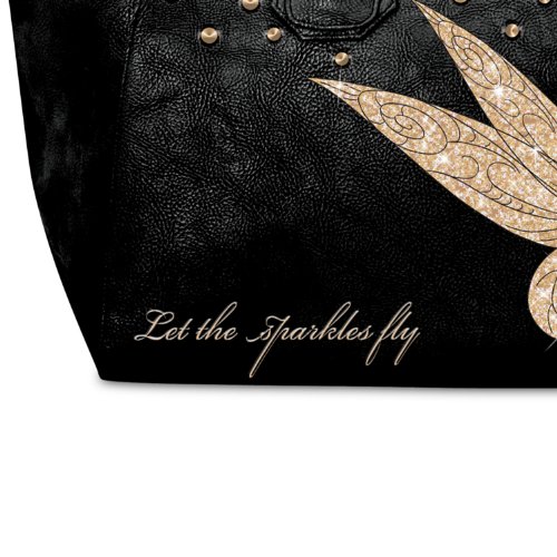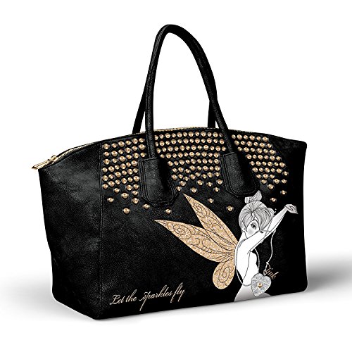 -. Brand : Bradford Exchange -. Color : black -. Department : womens -. EAN : 0709792216674 -. Feature : Disney's Tinker Bell, custom handbag style, and just the right amount of bling come together in this gorgeous Let the Sparkles Fly Handbag, a fashion-forward special design from The Bradford Exchange / Showcases a striking image of Tinker Bell from Disney artists; she strikes a decidedly fashionable pose, printed in black, white, and bronze against the rich black of the purse / Expertly crafted of high-quality faux suede, this handbag also features black faux leather double handles and antiqued bronze-toned hardware. / Antiqued brass-colored nail heads cascading down the top of the bag add to its contemporary feel, while the message "Let the sparkles fly" is embroidered in beautiful bronze-colored stitching that matches the bronze glitter sparkling from Tinker Bell's wing / This handbag also features a top zip closure along with an inside zippered pocket and slip pockets keep your belongings secure and organized -. Label : The Bradford Exchange -. Manufacturer : The Bradford Exchange -. Model : 01-18421-001 -. MPN : 01-18421-001 -. PartNumber : 01-18421-001 -. ProductGroup : Shoes -. ProductTypeName : HANDBAG -. Publisher : The Bradford Exchange -. Size : 16-1/2" W x 9-1/2" H x 4" D; drop measures 7" -. Studio : The Bradford Exchange -. Title : Handbag: Let The Sparkles Fly Tinker Bell Handbag by The Bradford Exchange -. UPC : 709792216674