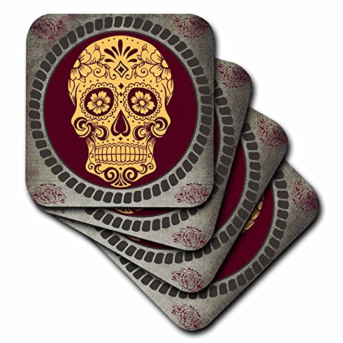 3D Rose Day of the Dead Cool Design Yellow-Burgundy-Grey Ceramic Tile Coasters