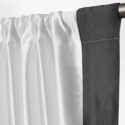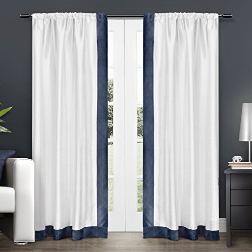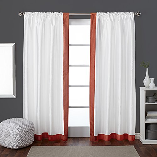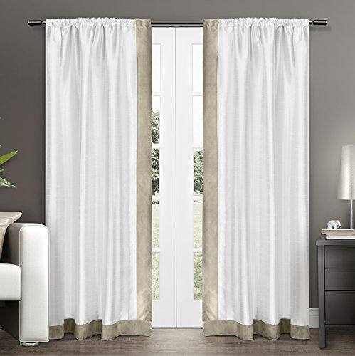 The Exclusive Home gram mercy faux silk rod pocket window curtain panels are elegant and sophisticated from our luxury hotel collection, sure to add the finishing touch to your home decor project. The contrasting borders are simple yet luxurious, a simple way to add a touch of color to any room. The rich colored borders provide just enough contrast to beautify any window setting in your home, apartment, office, business and more. The Gramercy drapery is constructed with a Sewn in rod pocket, fitting the curtain rod of your choice. Impress your friends, family and guests with these window curtain panels on any window.Feature