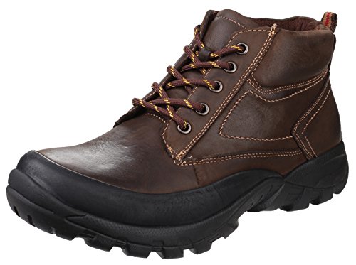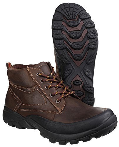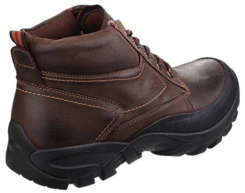 Binding : Apparel Product Description Mens walking boots. Rugged style featuring a seamless apron toe and contrasting dual stitching accents. Luxury deep padded collar and soft cushioned tongue. Lace up style with five heavy duty eyelets and strong cord lacing. Leather alignment loop on tongue gives fitted comfort. Hardwearing textile pull on loop with leather trouser tuck. Moisture wicking textile mesh lining. Padded foam insole rebounds into shape after wear. Chunky and flexible rubber sole unit with sturdy finish. Upper: Nubuck Leather. Lining: Mesh. Sole: Rubber. 0