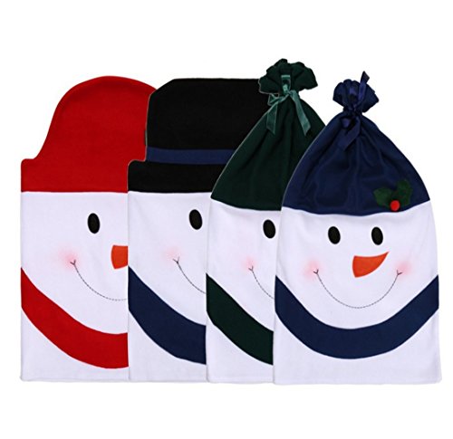 -. Feature : Adorable Design - Set of 4, 4 colors available. Blue, Red, Green, Black. They feature a snowman with huge smile. Cute design to decorate your chair for Christmas holidays / Durable Material - Made from soft material, it feels smooth and comfortable in the hands. Easy to clean and hand wash recommended / Each chair cover measures 22.8"x15.7" . Great for turning a boring old dining room into a jolly Christmas wonderland. Suitable for home, bedroom, room, office, coffee shop / Easy To Install and Take Off - A quick and easy way to dress up your holiday table, easy to install and remove / Great Addition for Christmas Holidays - Have your dining room ready for the season with our wonderfully unique Happy Snowman Chair Covers Set. Bring the happiness and joy of Christmas to your dining room. A must buy for home d¨¦cor