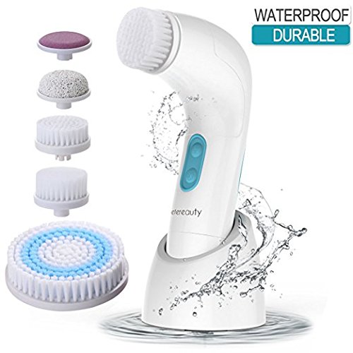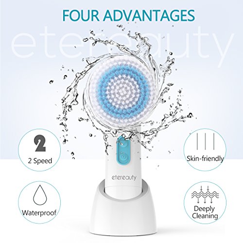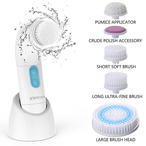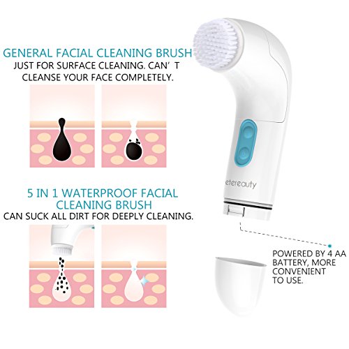 ETEREAUTY Facial Brush Waterproof Body Facial Cleansing Brush for Deep Cleansing, Gentle Exfoliating and Removing Blackhead with 5 Brush Heads
