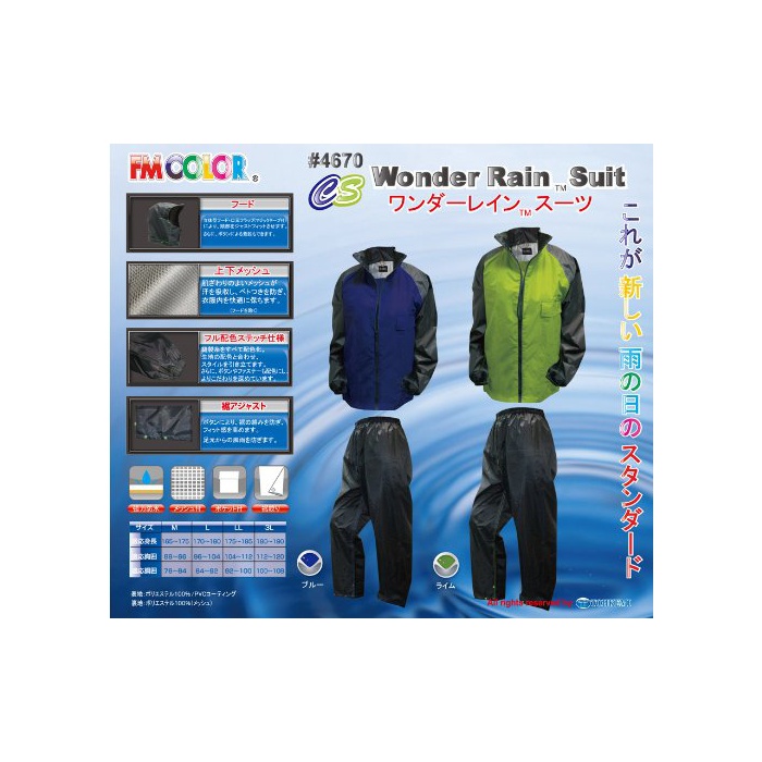 FM COLOR ?(TOHKEMI) 레인 웨어 CS원더 레인 슈트(#4670)+캐리 파우치 세트 색사이즈를 선택할 수 있습니다!! (라임, L)