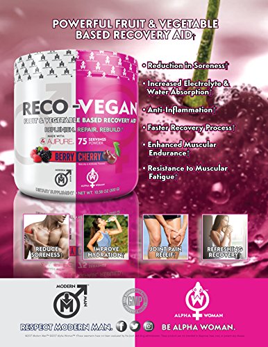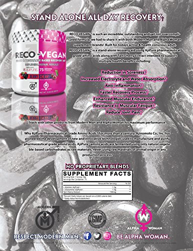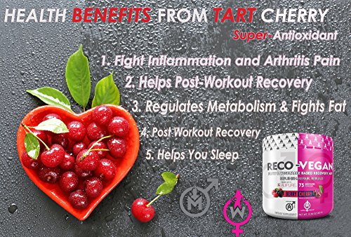 Reduction in Soreness Anti-Inflammation Faster Recovery Process Enhanced Muscular Endurance RECO-VEGAN - L-Glutamine Based Recovery Aid with Tart Cherry, Daily/Post Workout Supplement with Anti Inflammatory Benefits & Soreness Reduction, Berry Cherry, 75 Servings.