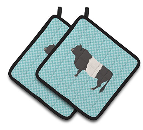 Caroline's Treasures BB8005PTHD Belted Galloway Cow Blue Check Decorated Pot Holder, 7.5" x 7.5", Multicolor