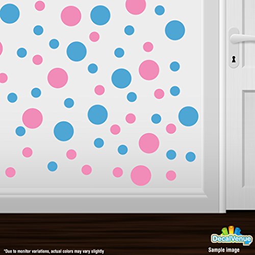 Set of 30 - Pink / Ice Blue Circles Polka Dots Vinyl Wall Graphic Decals Stickers