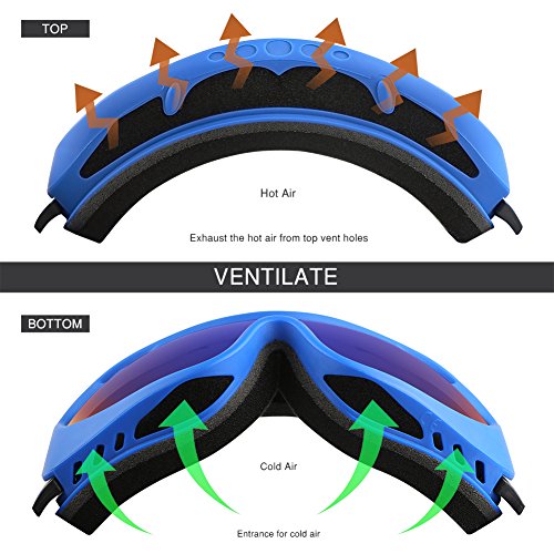 -. Feature : CRISP VISION - The spherical lens is loaded with features to offer superb and distortion-free visual clarity. The mirror coating removes glare, while the lens material ensures 100% UV400 protection. / ANTI-FOG - The inside of the lens is applied with a hydrophilic coating, plus we build our lenses with a double layer system, creating a thermal layer to minimize fogging. The frame is designed with a 4-directional venting system, providing fog-free clarity and comfort. / ADDITIONAL FEATURES - Anti-slip silicone backed and helmet compatible strap, triple layer foam, strong and flexible TPU frame, anti-scractch and impact-resistant lens. / ABOUT FIT AND LENS OPTION - Medium size fits most adults and teenagers. Please refer to VLT to choose the snow goggle that works best for your purpose: higher VLT value for dark condition while lower VLT for sunny days. / WHAT YOU GET - one pair of ALTA ski goggles, one microfiber pouch, 30-day hassle free return and life time satisfaction guarantee.