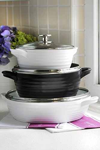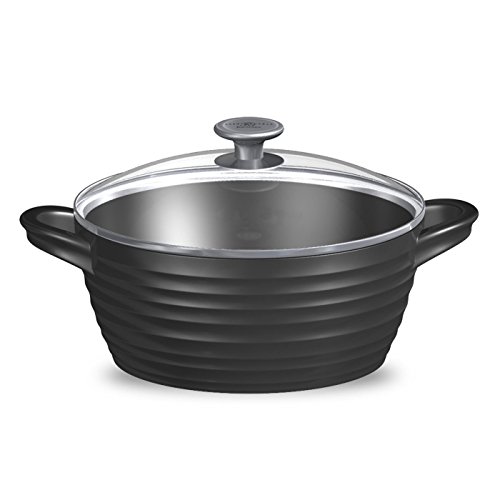 PORTMEIRION SOPHIE CONRAN CAST ALUMINUM CERAMIC COATED COOKWARE BLACK LARGE CASSEROLE WITH GLASS LID, 9.5 INCH