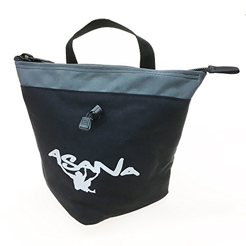 Studio : Asana Climbing Publisher : Asana Climbing Product Description Carry this bouldering bucket around the circuit for miles of great comments on the smart design. The bag unzips and zips with ease as you move from one problem to the next crushing rock with your bare hands. Big, bulky zipper does not clog with chalk! 0