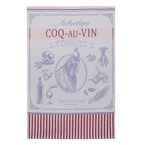 Coucke French Cotton Jacquard Towel French Gourmet Collection, Coq Au Vin (Chicken), 20-Inches by 30-Inches, Red and Blue