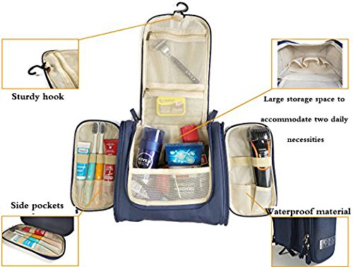 Hanging Toiletry Bag Multifunction Cosmetic Bag for Women Girls Portable Travel Waterproof Cosmetic Make up Bag case for Women Men with Sturdy Hook Heavy Duty (Navy)