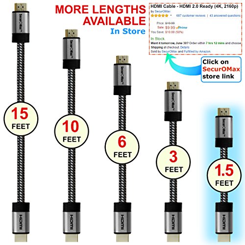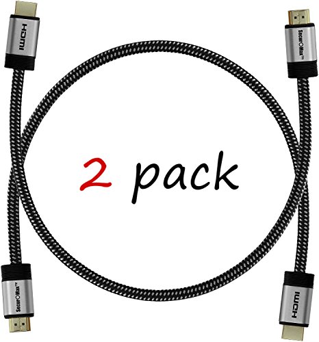 HDMI Cable 1.5 FT (2 Pack) - HDMI 2.0 (4K @ 60Hz) Ready - 30AWG Braided Cord - High Speed 18Gbps - Gold Plated - Ethernet / Audio Return - Video 2160p HD 1080p 3D - Xbox, PlayStation, PC, Apple TV