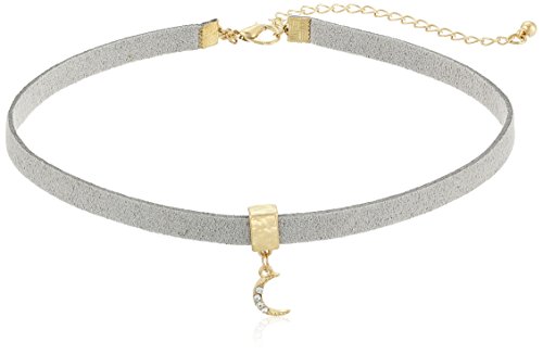 CANVAS Pave Moon Grey Suede Choker Necklace, 11" + 3.75" Extender