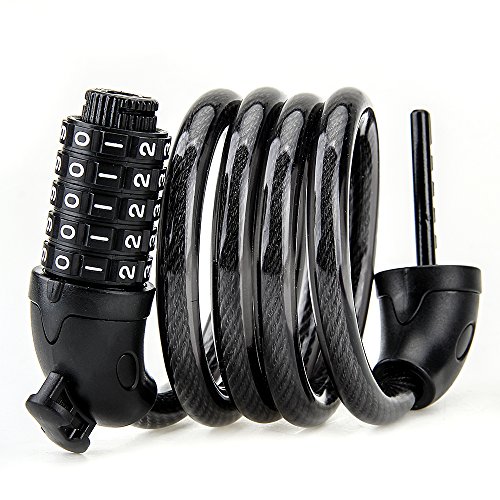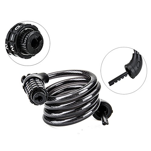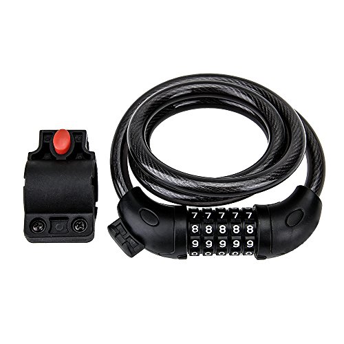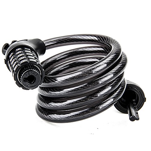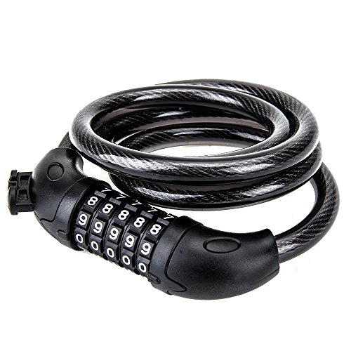 -. Feature : 5-stelliges Zahlenschloss-hohe Sicherheit und bequem zu bedienen / Kabellänge-ca.112 cm / Kabeldurchmesser-12 mm starke Kette aus gehärtetem Stahl / Schutz vor Kratzern-Stahlseilschloss mit leichter Kunststoffummantelung / Einfache Verwendung-Einfaches Öffnen dank Schloss, Automatisch schließendem
