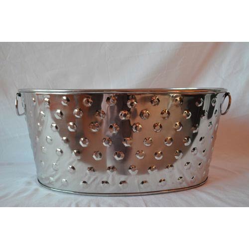 -. Feature : Shiny Stainless Steel Finish with Embossed Button / Extra large capacity / Rustproof Stainless steel / Easy to carry handles / Holds over 24+ bottled drinks and extra large bag of ice
