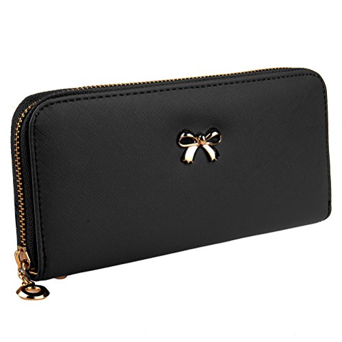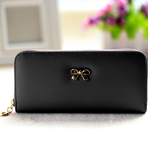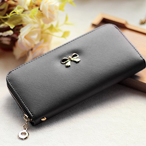 -. Title : FASHIONROAD Wristlet, Womens Leather Knotbow Purse Wallet, Zipper Card Holder Case
