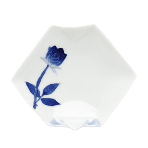 송화당 아리타산 도자기 고 하 # 접시(오리가미(종이접기)형) 청장미 10.5cm 전평가마 dep1691