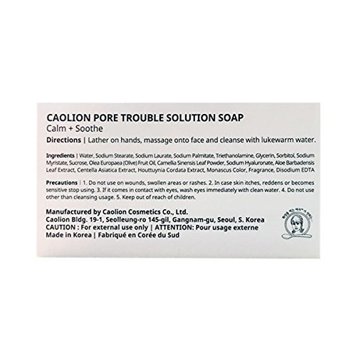 Caolion Pore Trouble Solution Soap - Calms and Hydrates Skin, Green Tea, Aloe - 3.53 oz.