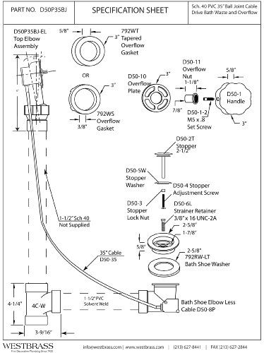 Westbrass D50P35BJ-05 35-Inch Ball Joint Schedule 40 PVC Cable Drain, Polished Nickel