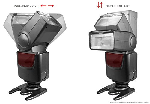 Includes Vertical bounce Range of 0° - 90° and horizontal swivel Range of 0° - 360°. Autofocus auxiliary lamp helps the camera to focus in low-light situations