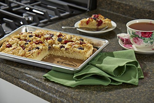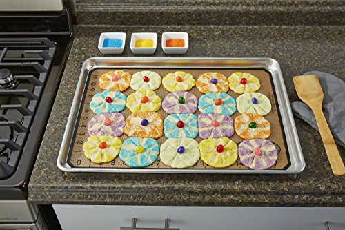 - Enjoy superior baking results for cookies, pastries, and more with this heavy-duty 18-gauge aluminum baking pan and reusable BPA- and PFOA-free nonstick silicone baking mat.