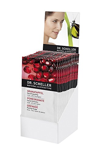 Studio : Dr. Scheller Skin Care Publisher : Dr. Scheller Skin Care Binding : Misc. Product Description Pomegranate Cleansing Face Exfoliater Sachets Refreshing for Mild All Skin Types 15 ct BoxWhat it is A mild facial exfoliator to buff away dead skin for a cleaner, clear skin tone. Recommended for all ages. What it is formulated to doWith granules of pomegranate seeds and silica that will gently exfoliate the skin, leaving a soft and radiant skin. By removing the dead, dry skin, all subsequent products will penetrate deeper so you receive the maximum benefits. Key IngredientsPomegranate Extract, Aloe Vera, Granules of silica and pomegranate seeds - No parabens