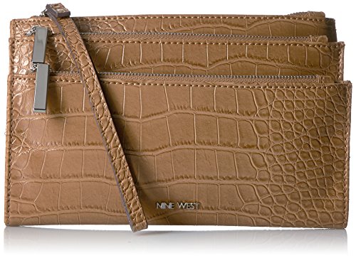 Nine West Pretty Little Things Tri Zip Wristlet, Dark Camel