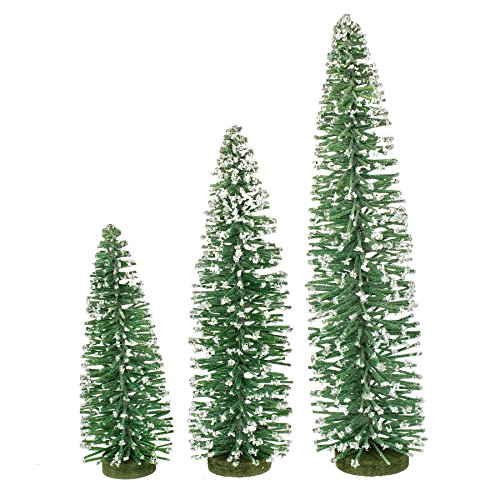 Flocked Evergreen Bamboo Wood Trees Assorted Sizes Set of 3