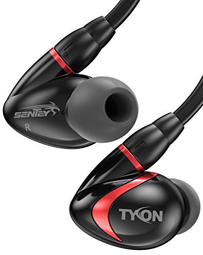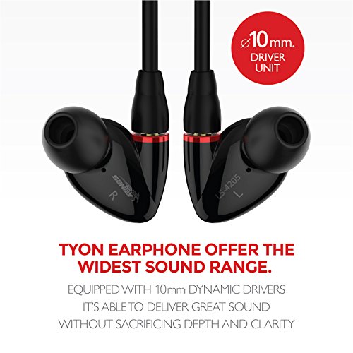 Sentey Earbuds Sport with In-line Controller and Mic in Ear Earphones Headphones for Running Travel Exercising Removable Cable Deep Bass Soundstage and Clarity (Black/red) Audiophile Level Tyon Ls4205