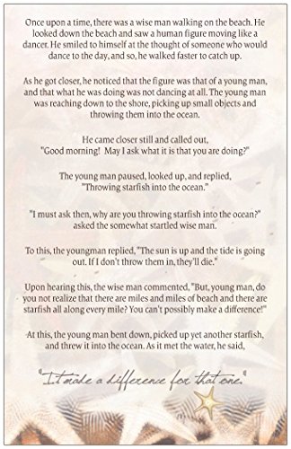 STARFISH STORY GREETING CARD ~5x7 inches. Starfish story greeting card is made from premium grade 100# matte paper. Includes envelope and sealing sticker. Printed and made in the USA. Some packages come with an upgraded envelope. See story below.