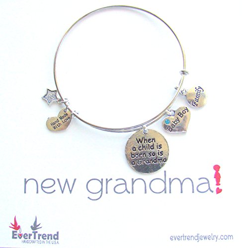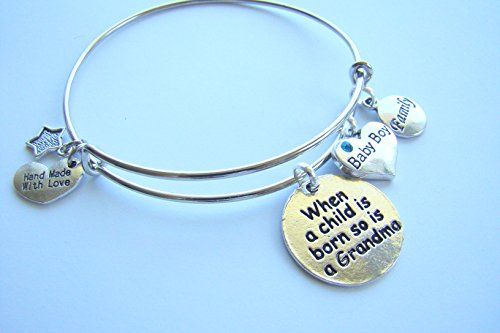 -. Title : New Grandma Expandable Bangle Charm Bracelet to Celebrate New Baby Boy